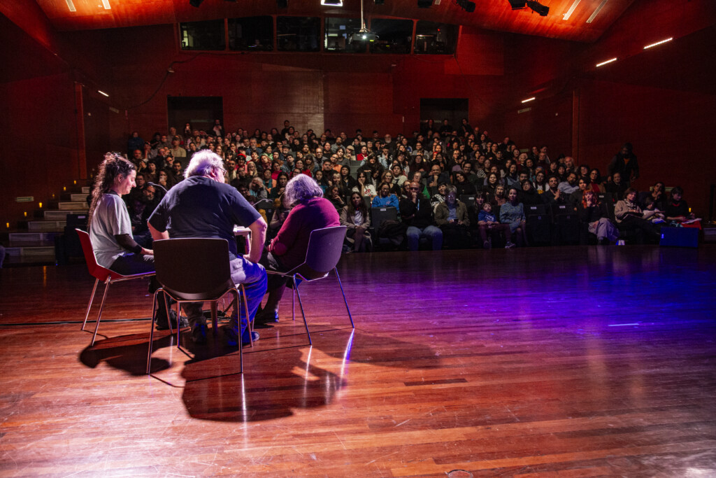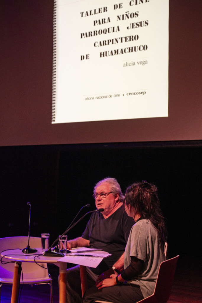 La actividad también contó con la proyección de un extracto del documental “Cien niños esperando un tren” y la lectura dramatizada del informe del primer taller desarrollado por Alicia Vega en la población Huamachuco de Renca, la que fue realizada por la dramaturga, directora de teatro y académica, Ana María Harcha y el cineasta Ignacio Agüero la que estuvo acompañada por una cuncuna de niñas y niños de cuarto básico del colegio artístico Sol del Illimani de La Florida.