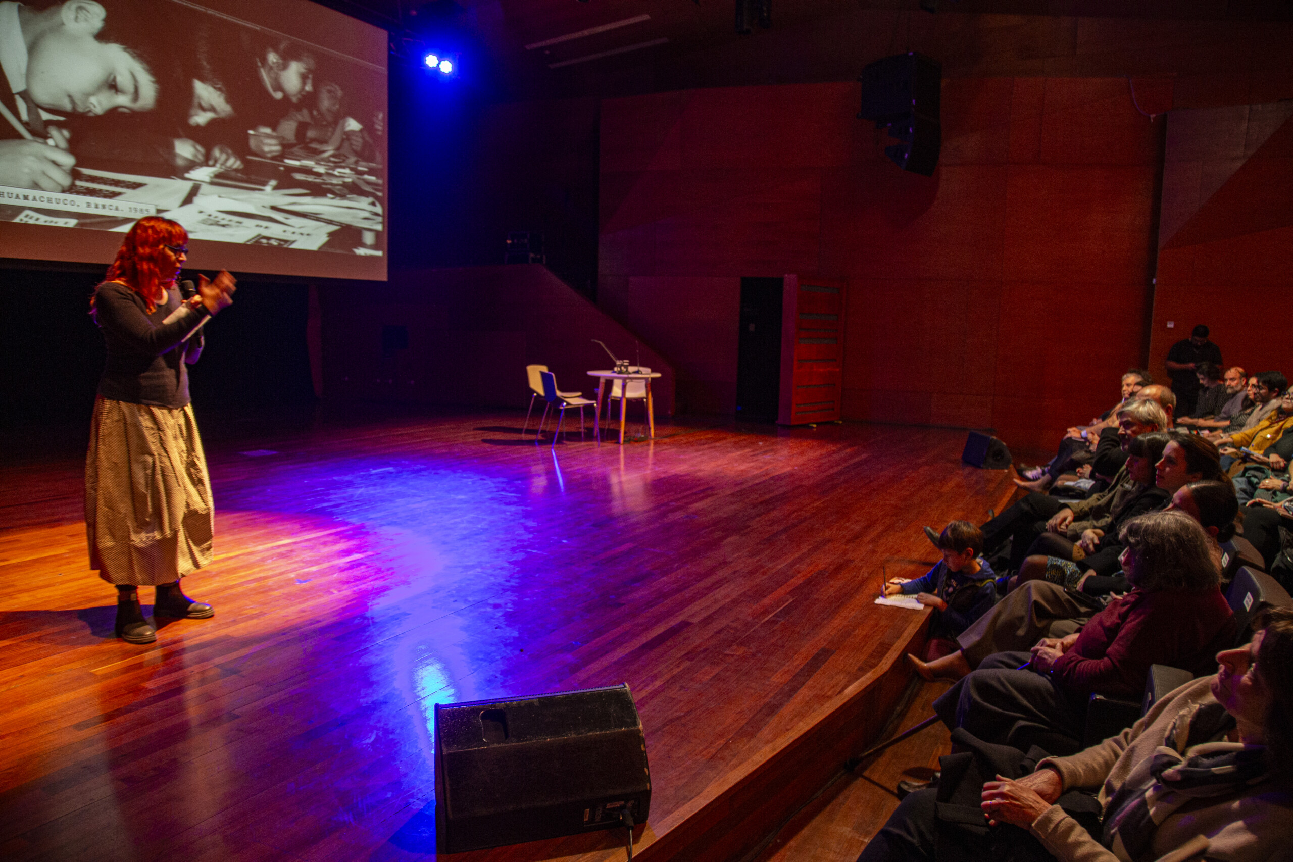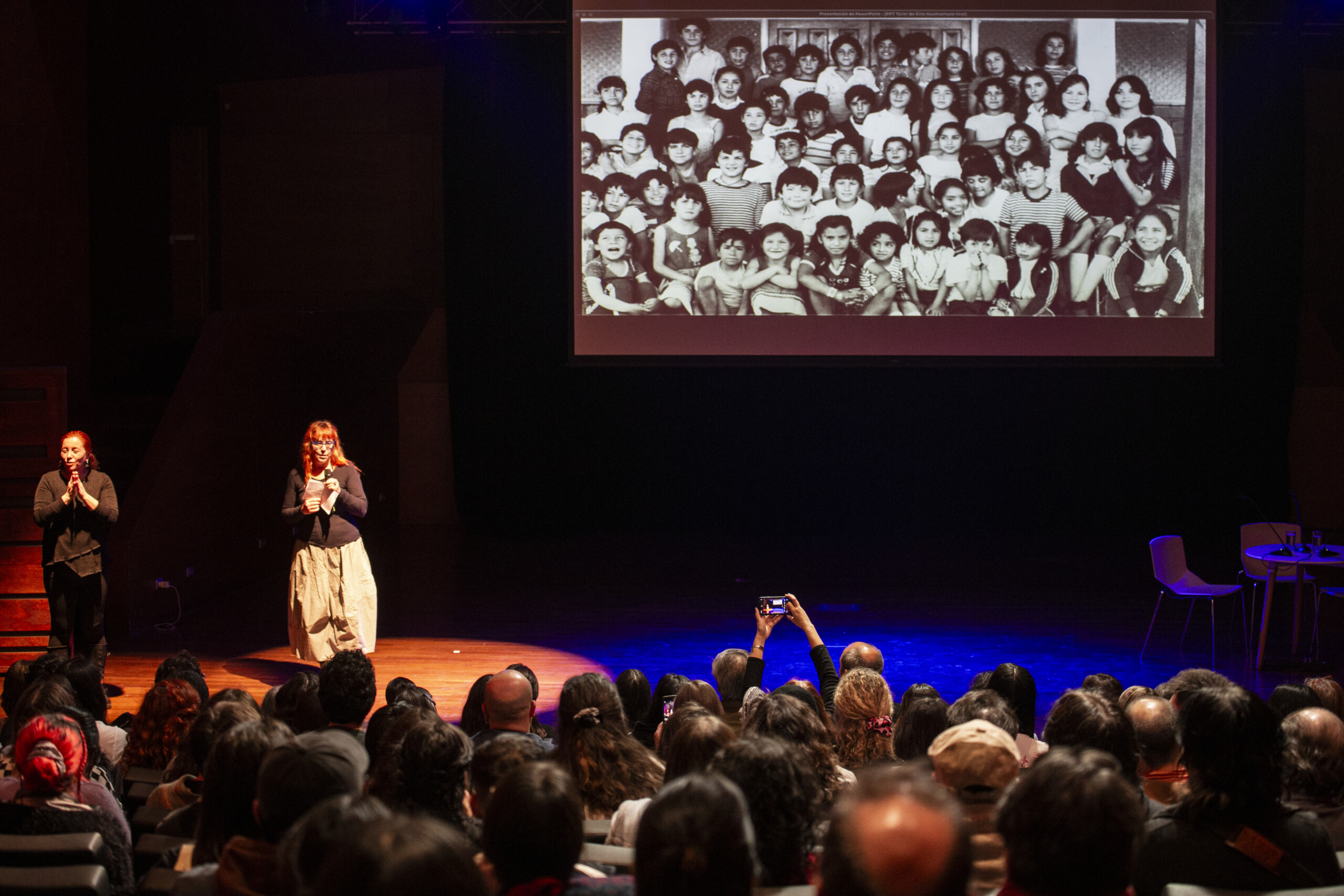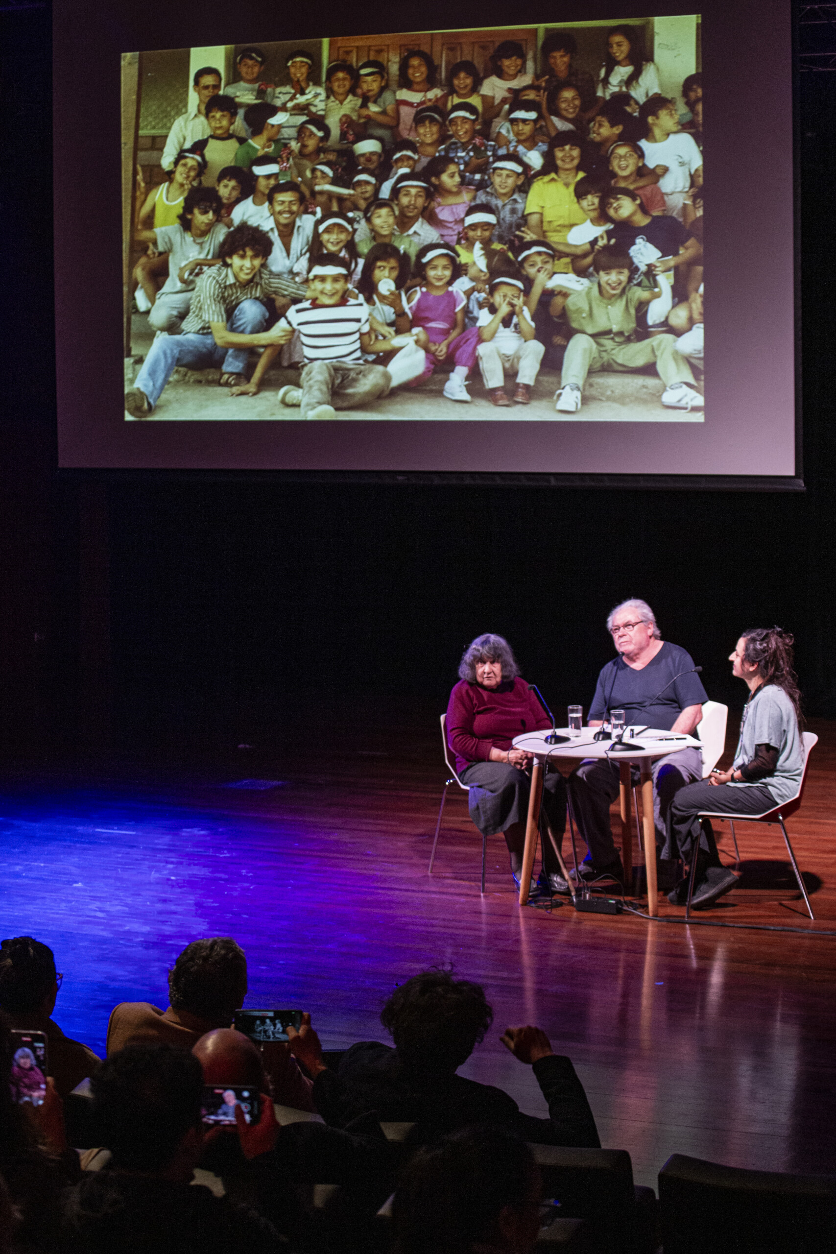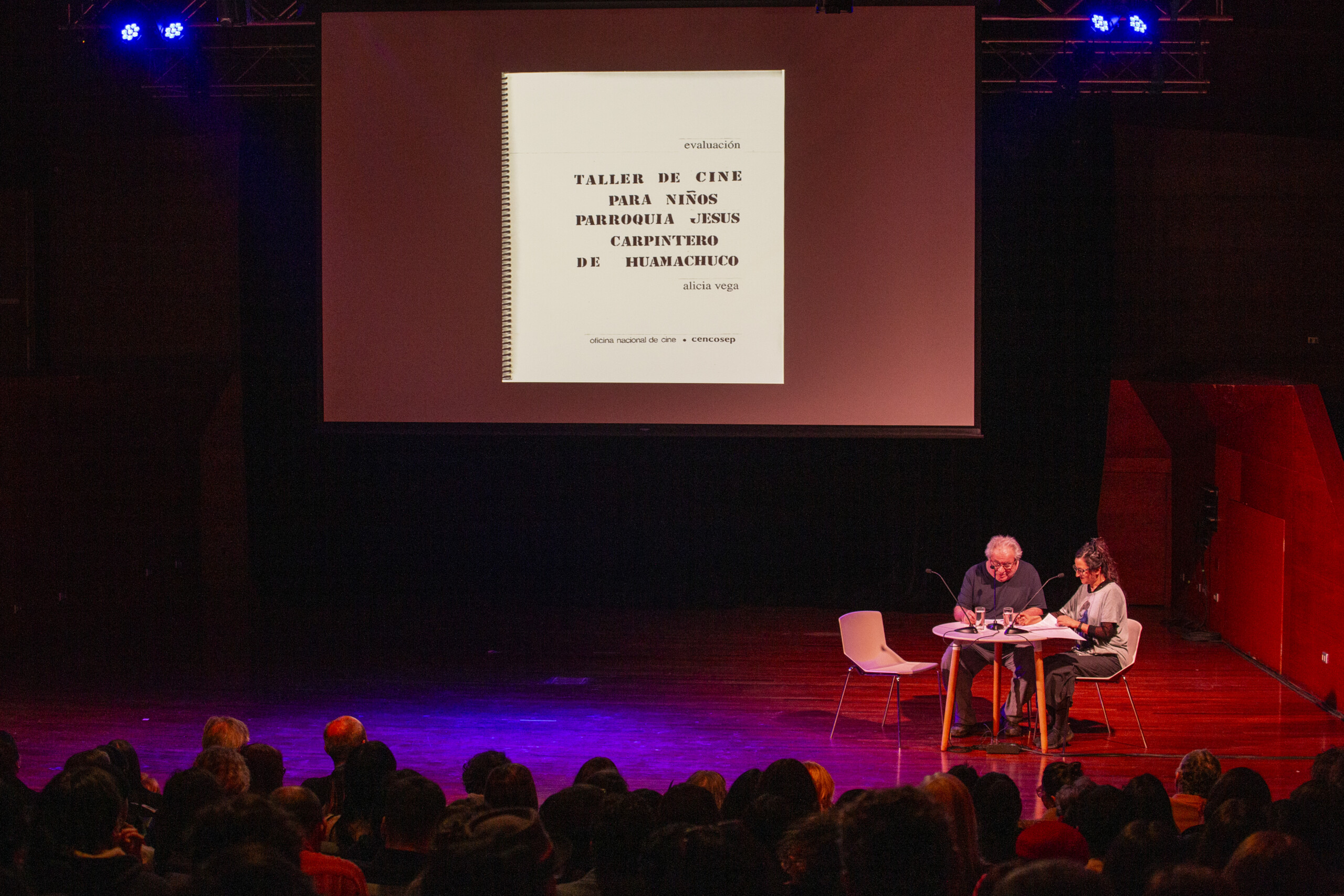 La actividad también contó con la proyección de un extracto del documental “Cien niños esperando un tren” y la lectura dramatizada del informe del primer taller desarrollado por Alicia Vega en la población Huamachuco de Renca, la que fue realizada por la dramaturga, directora de teatro y académica, Ana María Harcha y el cineasta Ignacio Agüero la que estuvo acompañada por una cuncuna de niñas y niños de cuarto básico del colegio artístico Sol del Illimani de La Florida.